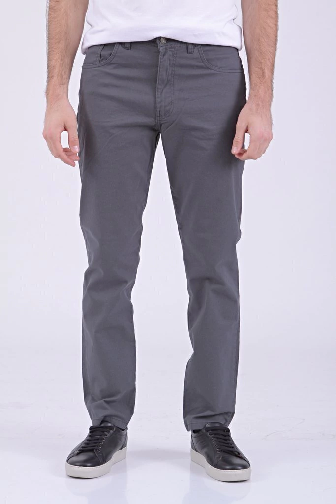 Confeccionado en gabardina elastizada de 7oz, este pantalón regular fit de corte recto está compuesto por 98% algodón y 2% elastano, garantiza elasticidad y comodidad.